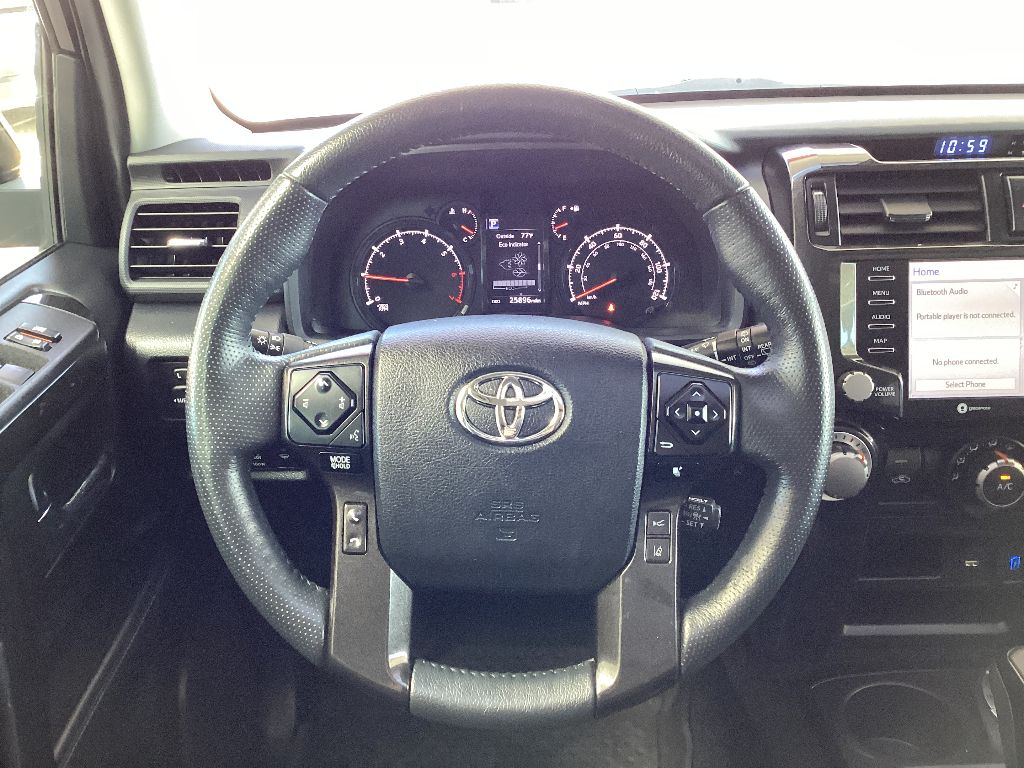 See what's behind you with the back up camera on this model. The installed navigation system will keep you on the right path. The leather seats in it are a must for buyers looking for comfort, durability, and style. The vehicle enhances safety with a blind spot monitor, alerting drivers to potential dangers in adjacent lanes. This model's Cross-Traffic Alert: Safeguarding you from unexpected traffic when reversing. Bluetooth technology is built into this 2023 Toyota 4Runner , keeping your hands on the steering wheel and your focus on the road. This unit offers Apple CarPlay for seamless connectivity. This 2023 Toyota 4Runner offers Android Auto for seamless smartphone integration. Expand the cargo capabilities of this Toyota 4Runner by using the installed roof rack. This model has a V6, 4.0L high output engine. This unit is painted with a sleek and sophisticated black color. The vehicle has four wheel drive capabilities.