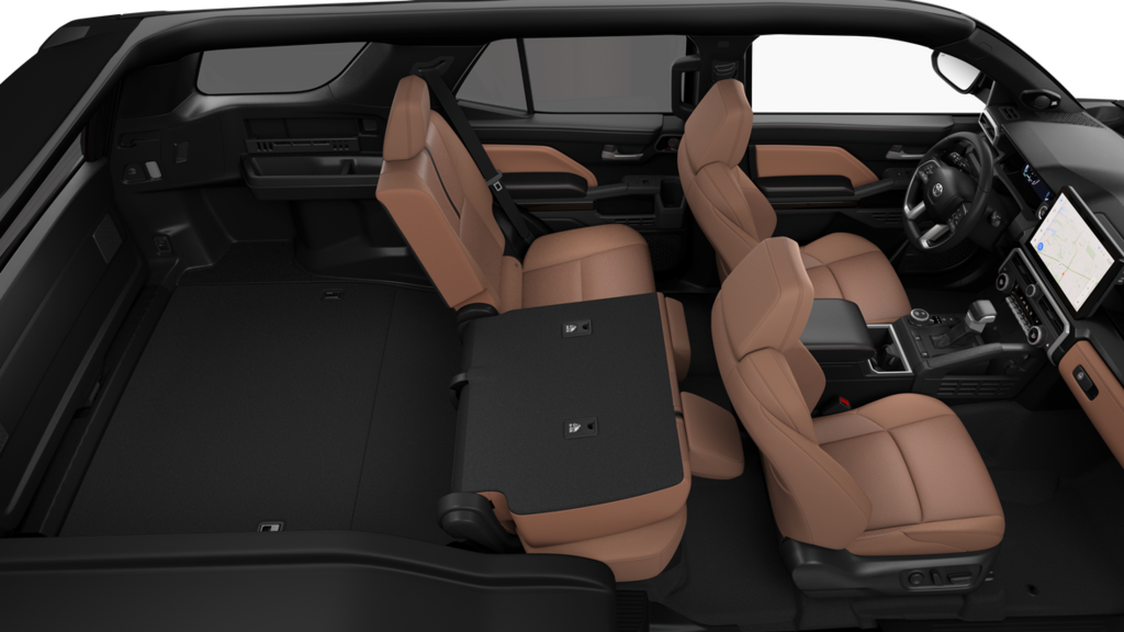 - 60/40 split, reclining and tumble-folding second-row seat with center armrest and cup holders