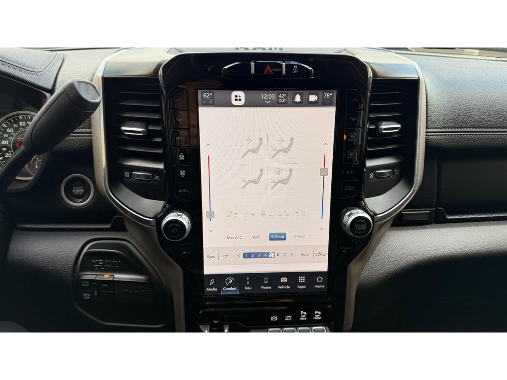 Laramie Level 1 Equipment Group: Google Android Auto; SiriusXM Radio Service; Blind Spot and Cross Path Detection; Power Adjustable Pedals with Memory; For Details. Visit DriveUconnect.com; For More Info. Call 800-643-2112; Integrated Voice Command with Bluetooth; 12 Touchscreen Display; Auto Power-Folding Mirrors; Front LED Fog Lamps; Mirror Running Lights; Alexa Built-In; Apple CarPlay; Power Adjustable Convex Aux Mirrors; Forward and Reverse Utility Lights; Disassociated Touchscreen Display; Remote Tailgate Release; 2nd Row in Floor Storage Bins; Rear Window Defroster; Rain Sensitive Windshield Wipers; Rear Power Sliding Window; Connectivity - US/Canada; GPS Navigation; 4G LTE Wi-Fi Hot Spot; GPS Antenna Input; Exterior Mirrors with Heating Element; Auto Dim Exterior Mirror; SiriusXM with 360L; Global Telematics Box Module; Connected Travel and Traffic Services; LED Reflector Headlamps; Foam Bottle Insert (door Trim Panel); Off-Road Information Pages; Selectable Tire Fill Alert; Trailer Tow Pages; HD Radio; Uconnect 5 Navigation with 12.0 Display Radio; Power Heated Fold Telescopic Mirrors with Memory; Exterior Mirrors with Supplemental Signals; Exterior Mirrors Courtesy Lamps; Auto High Beam Headlamp Control; Chrome Exterior Mirrors; Exterior Mirrors with Memory; Power Adjust Mirrors; Power Telescoping Mirrors; Radio/driver Seat/mirrors/pedals Memory; Auto Dim Exterior Passenger Mirror; Auto Adjust in Reverse Exterior Mirrors; ParkSense Front/rear Park Assist System. Quick Order Package 2HH Laramie. Protection Group: Tow Hooks; Transfer Case Skid Plate Shield. Heavy Duty Snow Plow Prep Group: Transfer Case Skid Plate Shield; 220 Amp Alternator. Chrome Bumper Package: Bright Rear Bumper; Bright Front Bumper. MOPAR Spray in Bedliner. Blind Spot and Cross Path Detection. Billet Silver Metallic CC. Tow Hooks. **Equipment listed is based on original vehicle build and subject to change. Please confirm the accuracy of the included equipment by calling the dealer prior to purchase.**